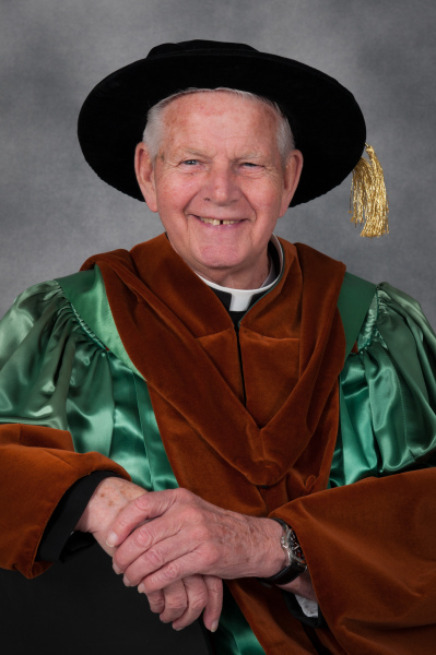 Father Charlie shown wearing his regalia during Convocation in 2015 when he was granted an honorary doctor of laws degree
