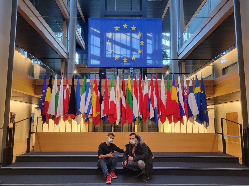 MGA students Nick Sablan from California (left) and Ignacio Martín from Madrid (right) visit the headquarters for the Council of Europe in Strasbourg, France